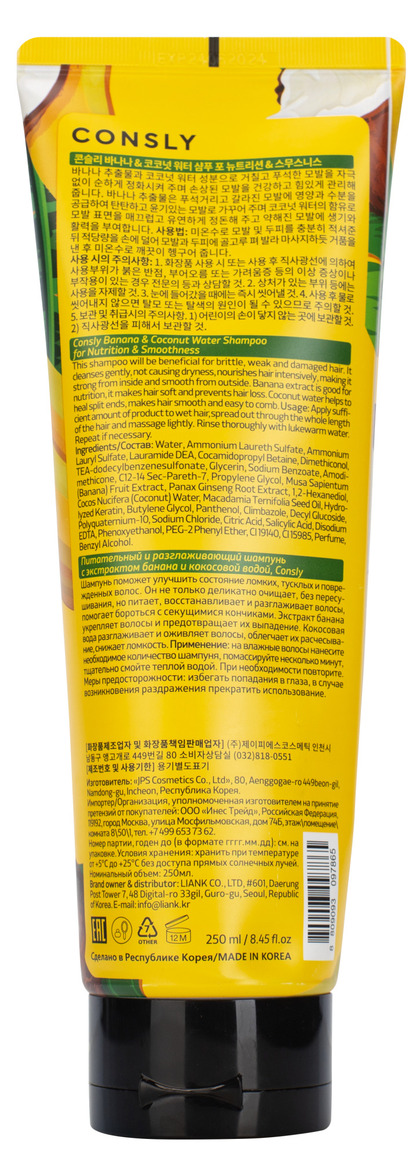 CNS HAIR BC Шампунь питательный с экстрактом банана и кокосовой водой Banana & Coconut Water Shampoo for Nutrition & Smoothness, 250мл