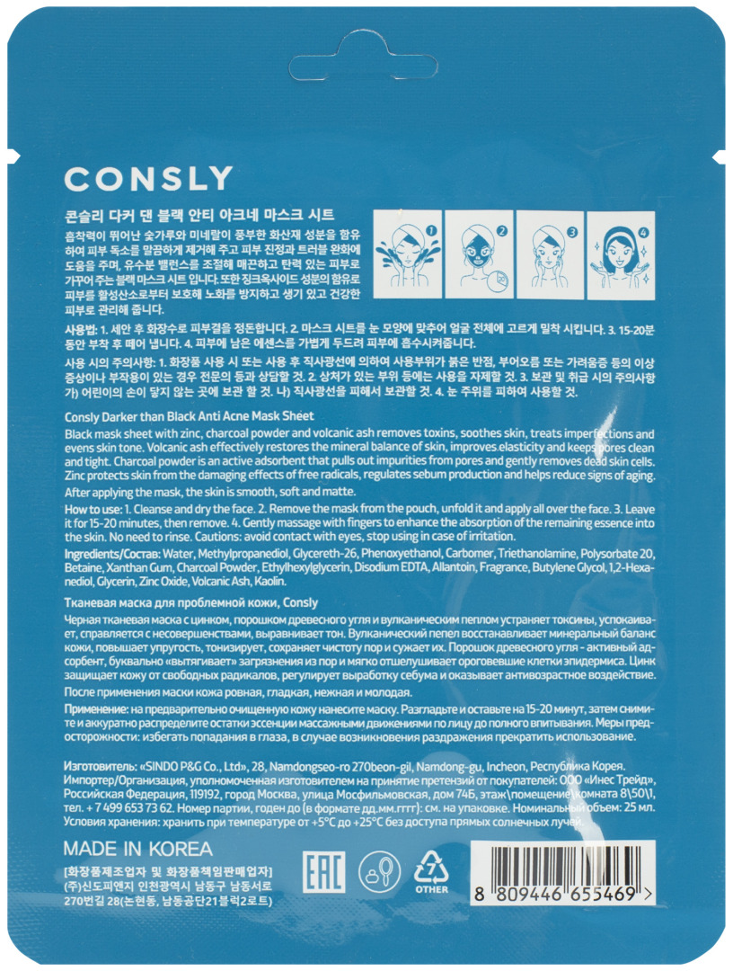 CNS Маска тканевая DtB для проблемной кожи Darker than Black Anti Acne Mask Sheet, 25мл