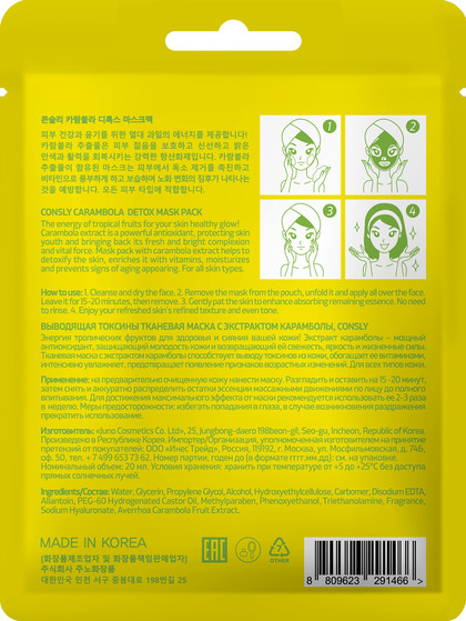 CNS F Маска тканевая выводящая токсины с экстрактом карамболы Carambola Detox Mask Pack, 20мл