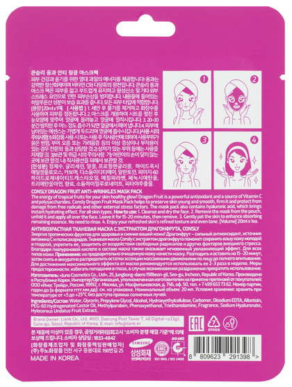 CNS F Маска тканевая антивозрастная с экстрактом драгонфрута Dragon Fruit Anti-Wrinkles Mask Pack, 20мл