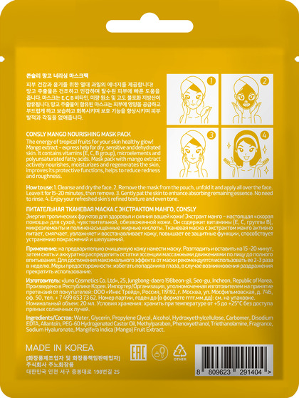 CNS F Маска тканевая питательная с экстрактом манго Mango Nourishing Mask Pack, 20мл