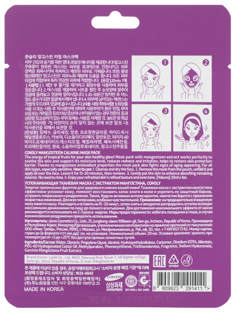 CNS F Маска тканевая успокаивающая с экстрактом мангостина Mangosteen Calming Mask Pack, 20мл