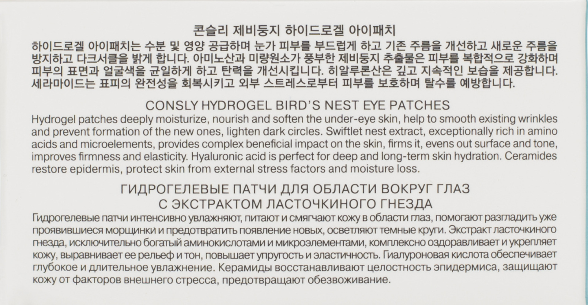 CNS PATCHES Патчи гидрогелевые для области вокруг глаз с экстрактом ласточкиного гнезда Hydrogel Bird's Nest Eye Patches, 60шт