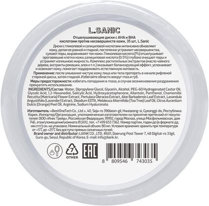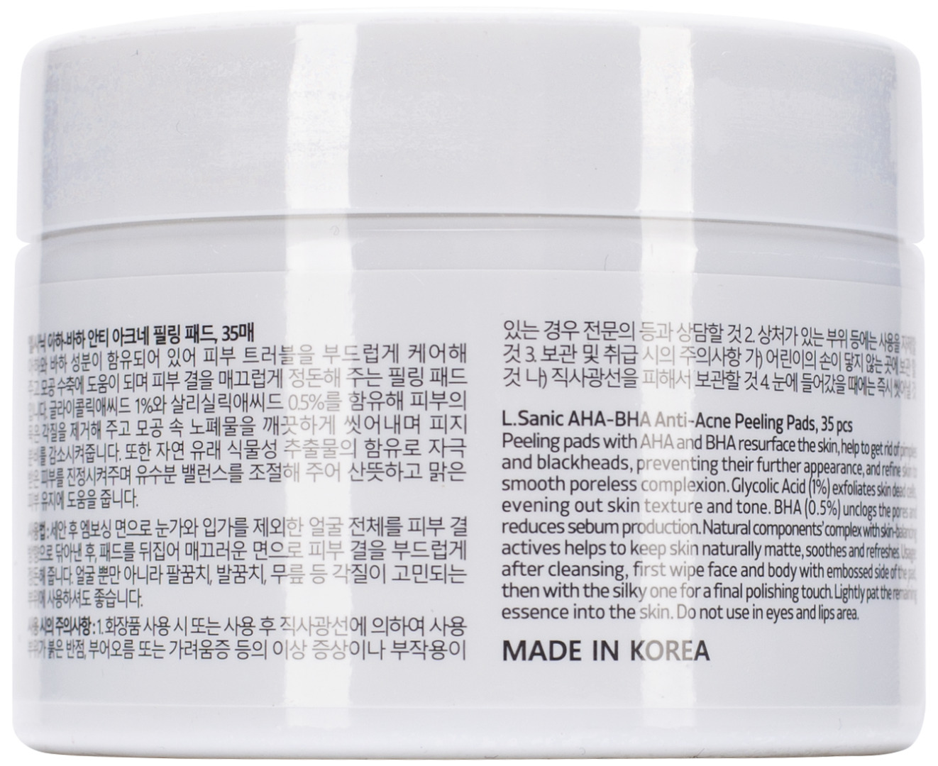 LSN Pads Диски отшелушивающие с AHA и BHA кислотами против несовершенств кожи Aha-Bha Anti-Acne Peeling Pads, 35шт