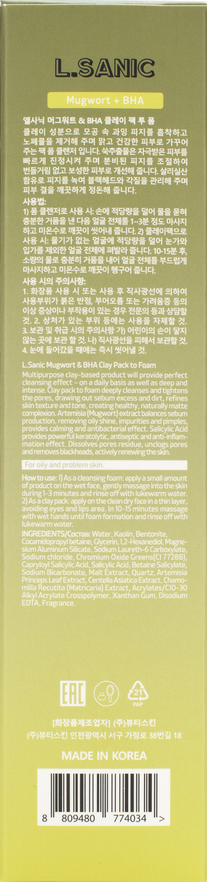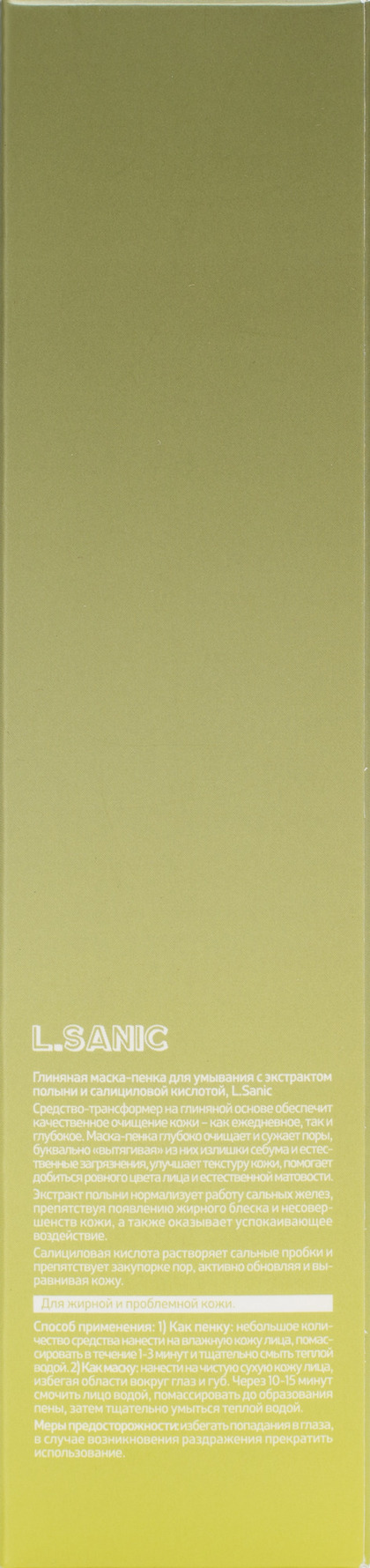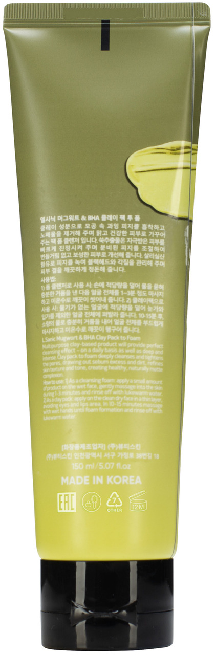 LSN Pack Маска-пенка глиняная для умывания с экстрактом полыни и салициловой кислотой Mugwort & BHA Clay Pack to Foam, 150мл