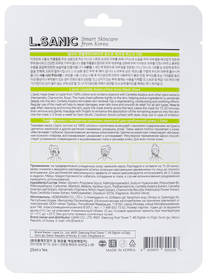 LSN Маска тканевая с экстрактом центеллы азиатской для проблемной кожи Centella Asiatica Post-Acne Mask Sheet, 25мл