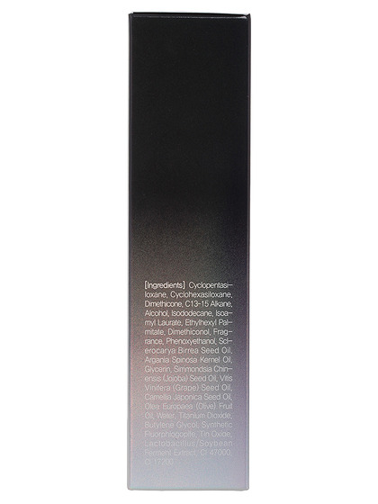 Cyclopentasiloxane, Cyclohexasiloxane, Dimethicone, C13-15 Alkane, Alcohol, Ethylhexyl Palmitate, Isoamyl Laurate, Isododecane, Dimethiconol, Phenoxyethanol, Fragrance, Fragrance(Linalool, Limonene), Argania Spinosa Kernel Oil, Camellia Japonica Seed Oil, Glycerin, Olea Europaea (Olive) Fruit Oil, Sclerocarya Birrea Seed Oil, Simmondsia Chinensis (Jojoba) Seed Oil, Vitis Vinifera (Grape) Seed Oil, Water, Titanium Dioxide, Butylene Glycol, Synthetic Fluorphlogopite, Tin Oxide, Lactobacillus/Soybean Ferment Extract, CI 47000, CI 17200