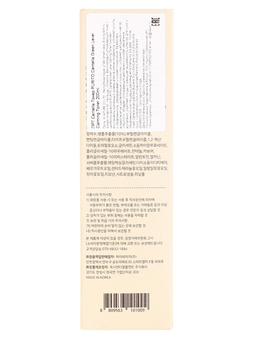 Изготовитель: HINATURE CO.LTD., Республика Корея, 21990 Smart Valley E dong 908 ho, Songdo Mirae-ro 30, Yeonsu-gu, Incheon-si. Бесспиртовый успокаивающий тонер с центеллой азиатской PURITO Centella Green Level Calming Toner помогает восстановить нормальный уровень влаги в клетках эпидермиса, устраняет сухость и обезвоженность, обеззараживает и снимает покраснения. Эффективно воздействует на чувствительную и сухую кожу, устраняет шелушения и чувство стянутости, обладает успокаивающим действием и ускоряет заживление воспалений. Укрепляет сосуды и уменьшает выраженность купероза. Для сухой и обезвоженной кожи процедуру рекомендуется повторить 2-4 раза.
