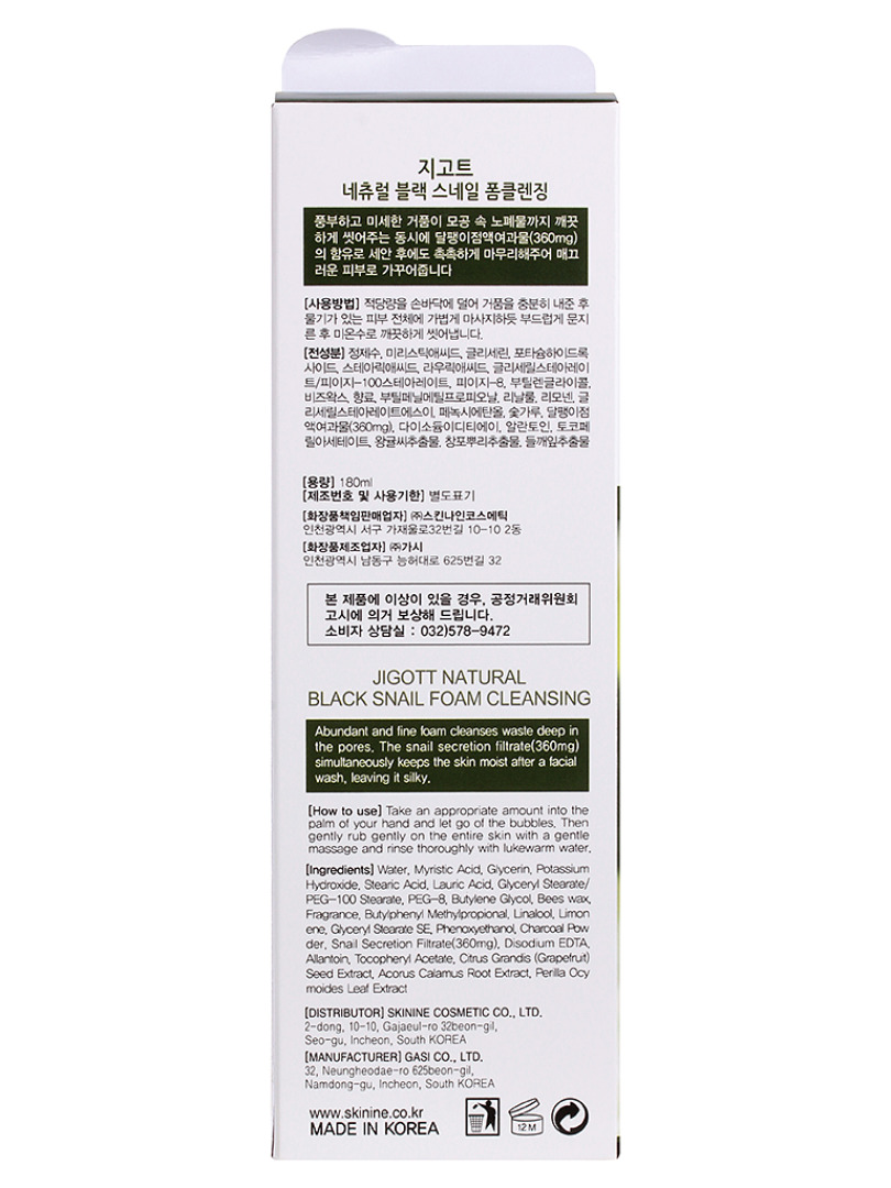 JGT FOAM Пенка для лица с экстрактом улиточного муцина JIGOTT NATURAL BLACK SNAIL FOAM CLEANSING, 180ml