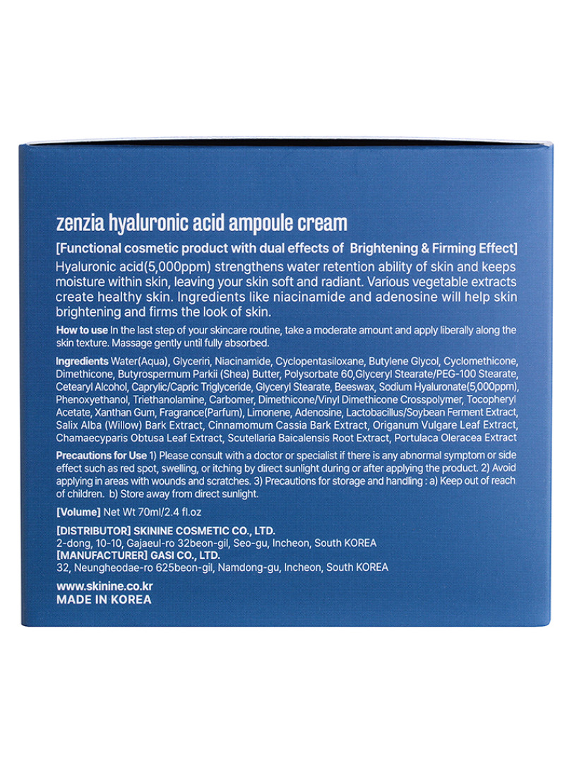 Изготовитель: Gasi Cosmetic Co.,Ltd., Республика Корея, 32, Neungheodae-ro, 625 beon-gil, Namdong-gu, Incheon. Функциональный крем на основе гиалуроновой кислоты. Крем не оставляет ощущения липкости и быстро впитывается. Гиалуроновая кислота в составе средства интенсивно увлажняет обезвоженную кожу, способствует выработке собственной гиалуроновой кислоты, синтезу коллагена и эластина. Способ применения: Небольшое количество крема нанести на очищенную кожу лица.