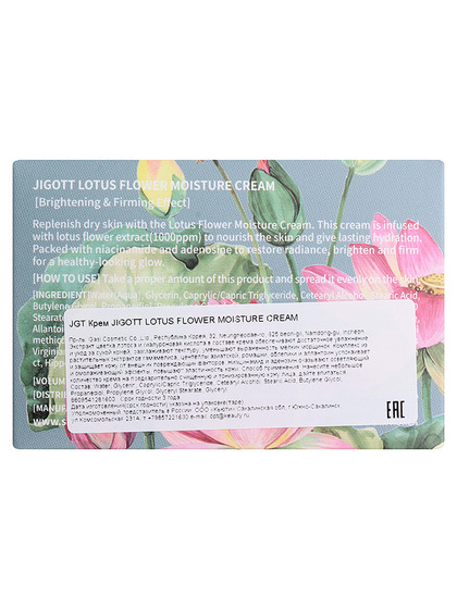 JGT CREAM Крем для лица увлажняющий с экстрактом лотоса JIGOTT LOTUS FLOWER MOISTURE CREAM, 100ml