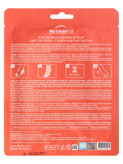 JGT Foot Маска-носочки для ног осветляющая с витамином В12 Jigott Vita Solution 12 Brightening Foot Care Pack