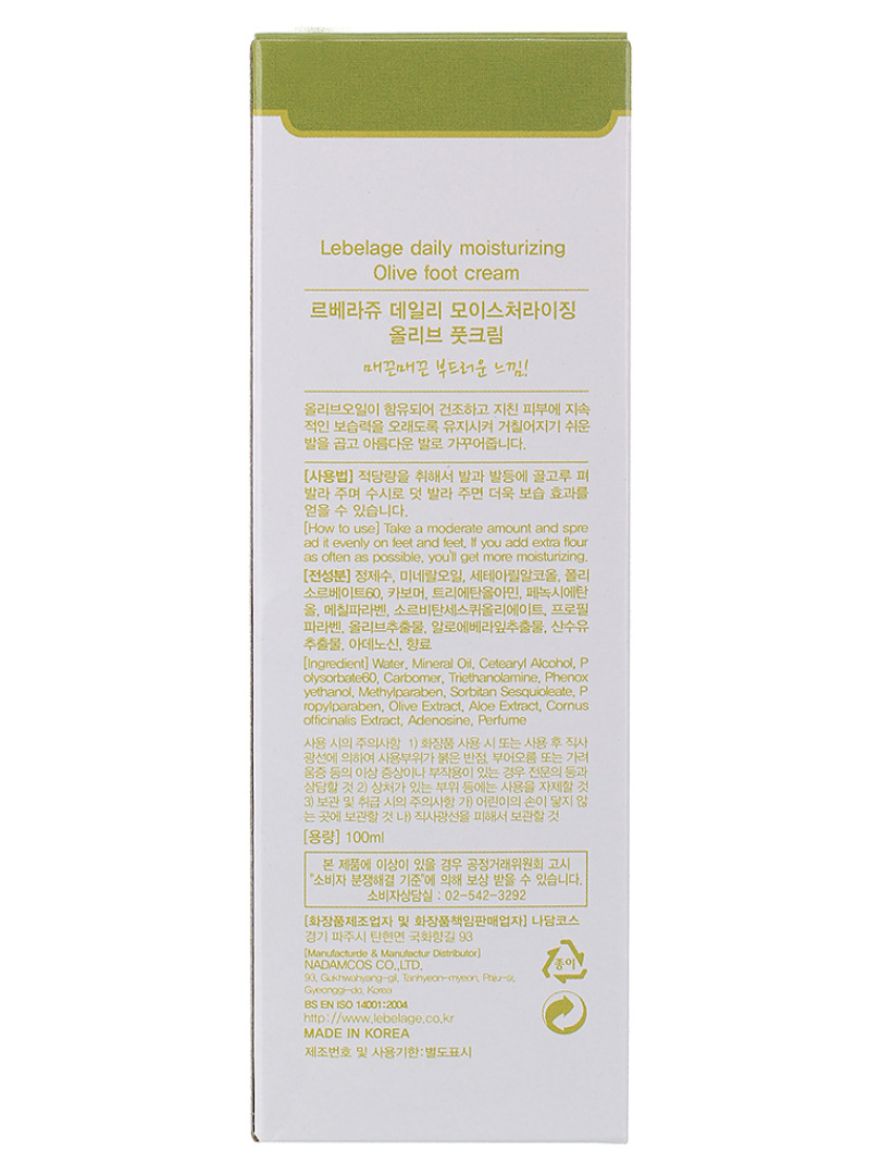 LBLG FOOT Крем для ног увлажняющий с экстрактом оливы LEBELAGE DAILY MOISTURIZING OLIVE FOOT CREAM