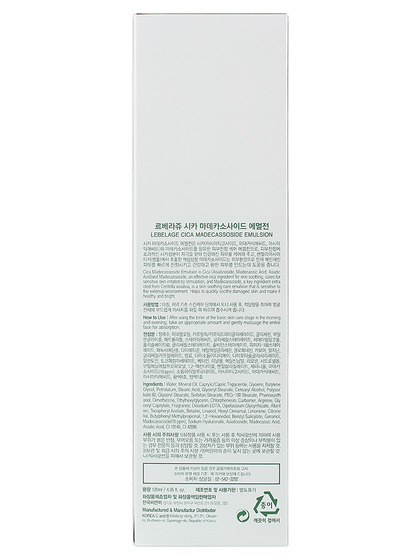Изготовитель: KKOREA C&B Co., Ltd., Корея, Республика, (Dodang-dong. 2F), 211, Oksan-ro, Bucheon-si, Gyeonggi-do. Успокаивающая эмульсия с центеллой азиатской улучшает эластичность, замедляет старение кожи, успокаивает, уменьшает следы повреждений уже после первого нанесения. Экстракт центеллы азиатской и мадекасоссид эффективно успокаивают, устраняют повреждения, ускоряют процессы восстановления. Эмульсия подходит для всех типов кожи, но особенно рекомендуется для чувствительной. Способ применения: нанести эмульсию легкими круговыми движениями до полного впитывания на очищенную кожу лица и шеи утром и вечером.
