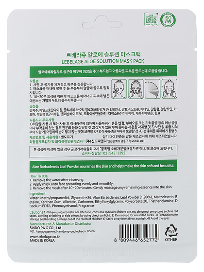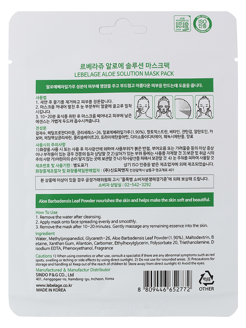 LBLG Маска тканевая LEBELAGE ALOE SOLUTION MASK