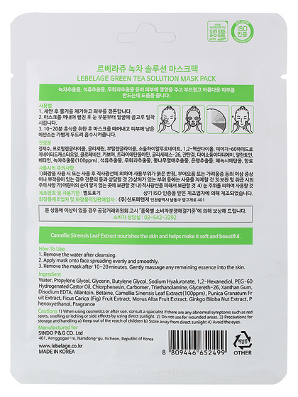 LBLG Маска тканевая LEBELAGE GREEN TEA SOLUTION MASK