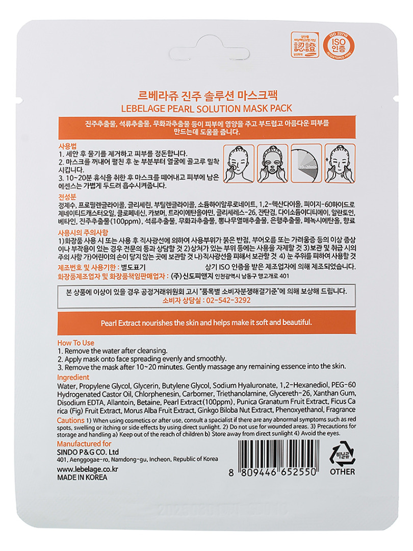 LBLG Маска тканевая LEBELAGE PEARL SOLUTION MASK