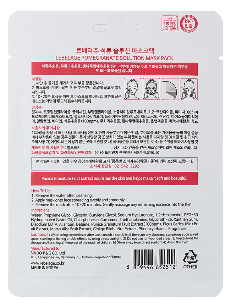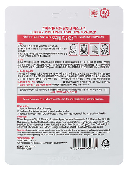 LBLG Маска тканевая LEBELAGE POMEGRANTE SOLUTION MASK