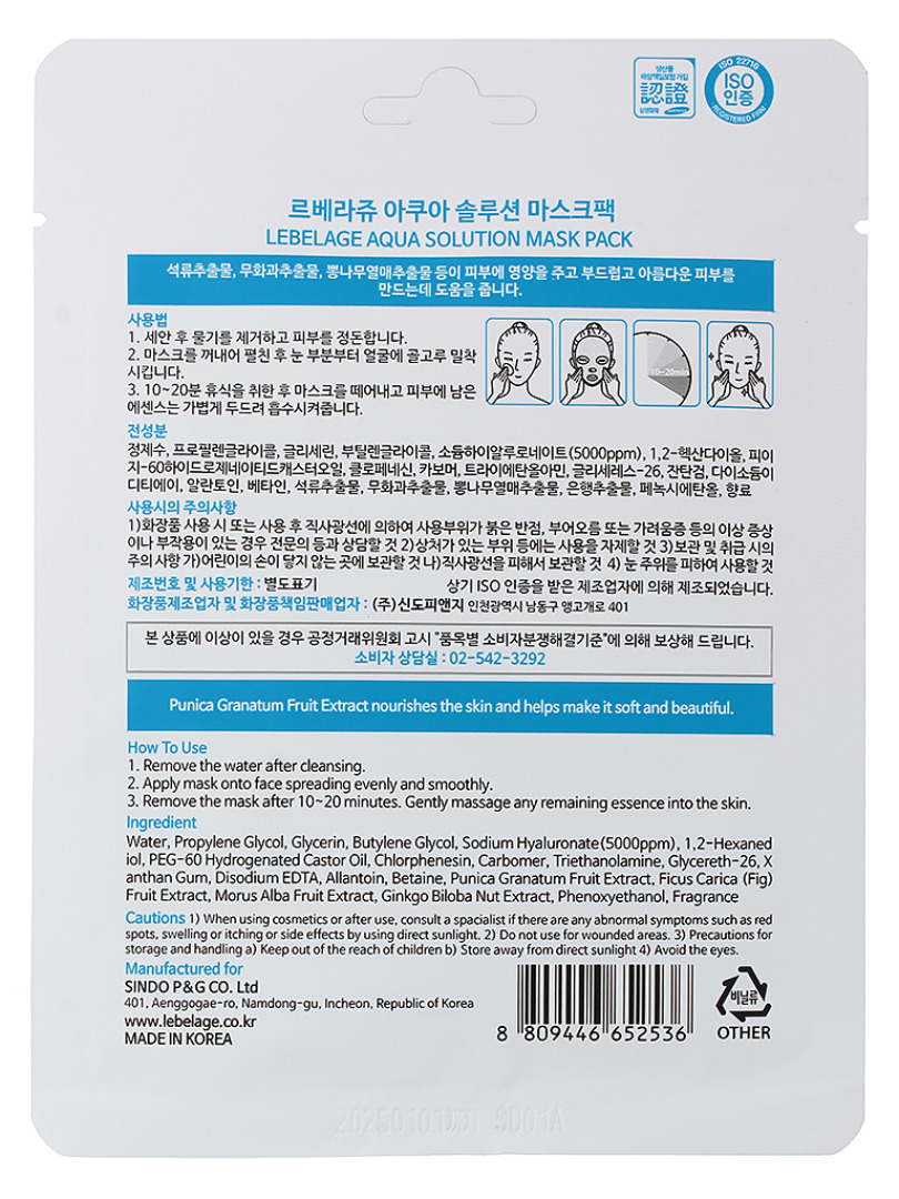 LBLG Маска тканевая LEBELAGE AQUA SOLUTION MASK
