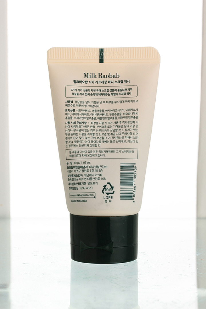 MB Cica Гель-скраб для душа MilkBaobab Cica Refreshing Body Scrub Wash Travel Edition 30ml