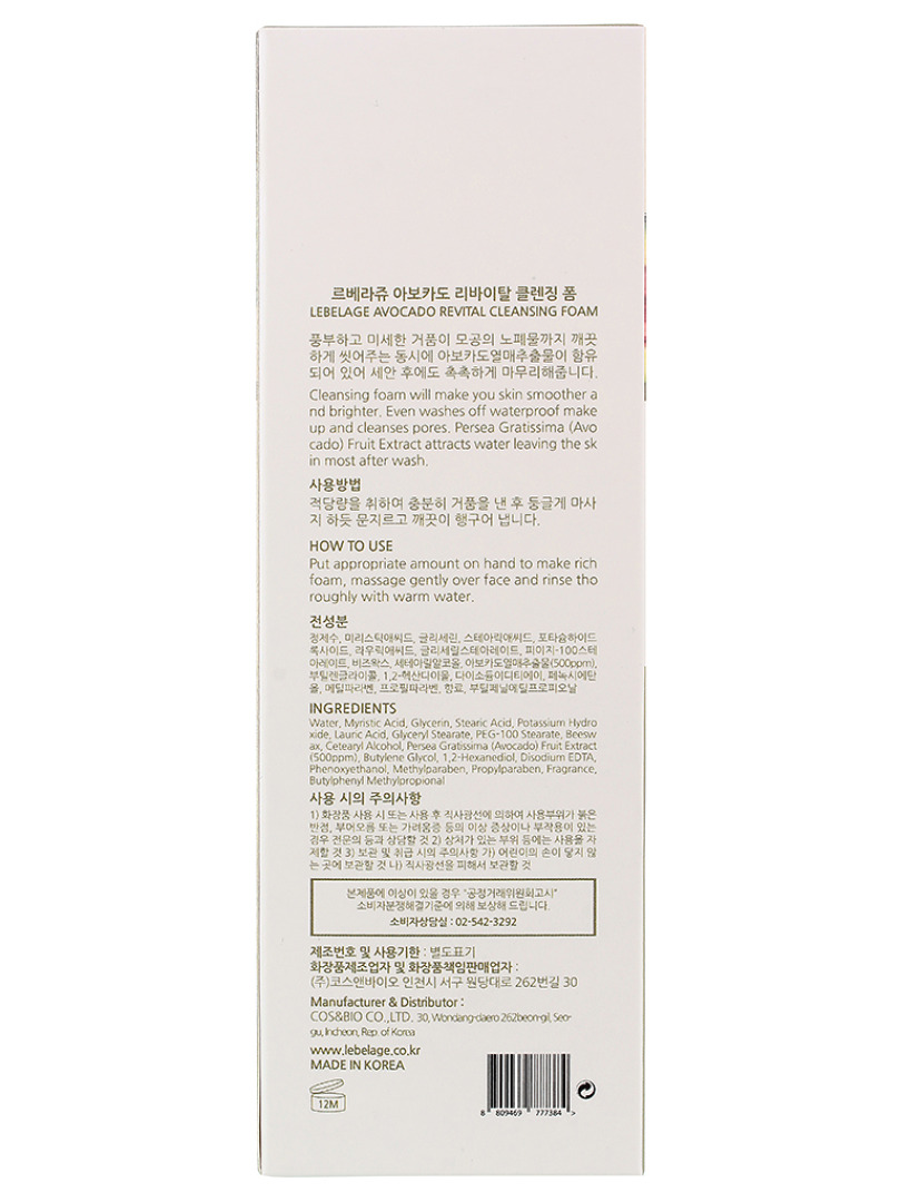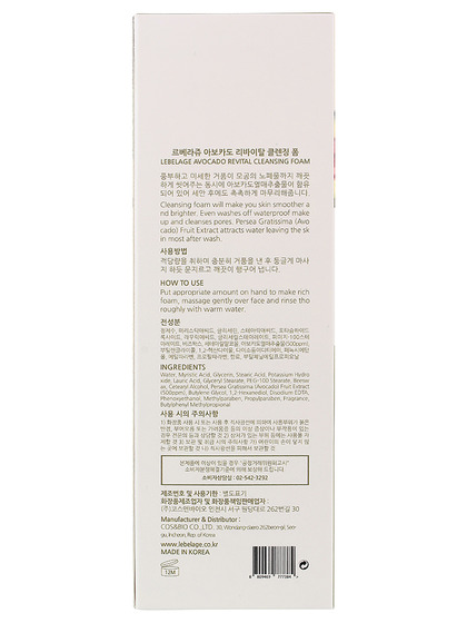LBLG FOAM Пенка для умывания с экстрактом авокадо LEBELAGE AVOCADO REVITAL CLEANSING FOAM (180ml)