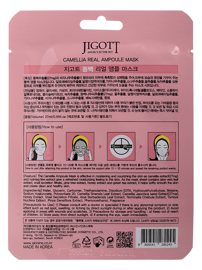 JGT Маска на тканевой основе JIGOTT CAMELLIA REAL AMPOULE MASK