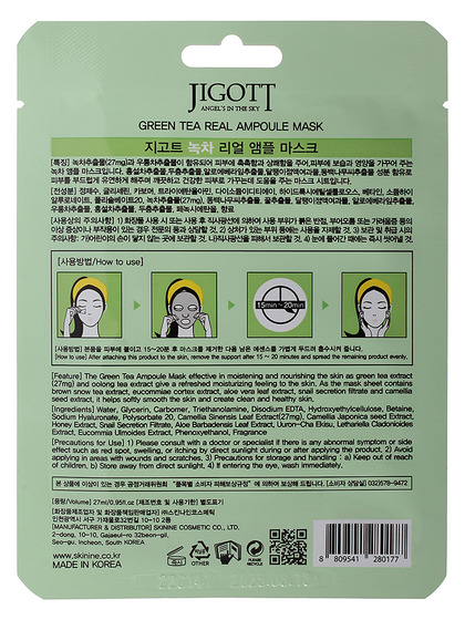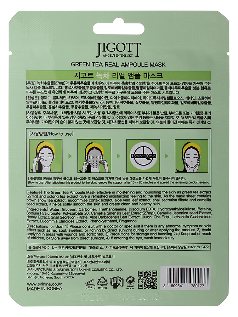JGT Маска на тканевой основе JIGOTT GREEN TEA REAL AMPOULE MASK