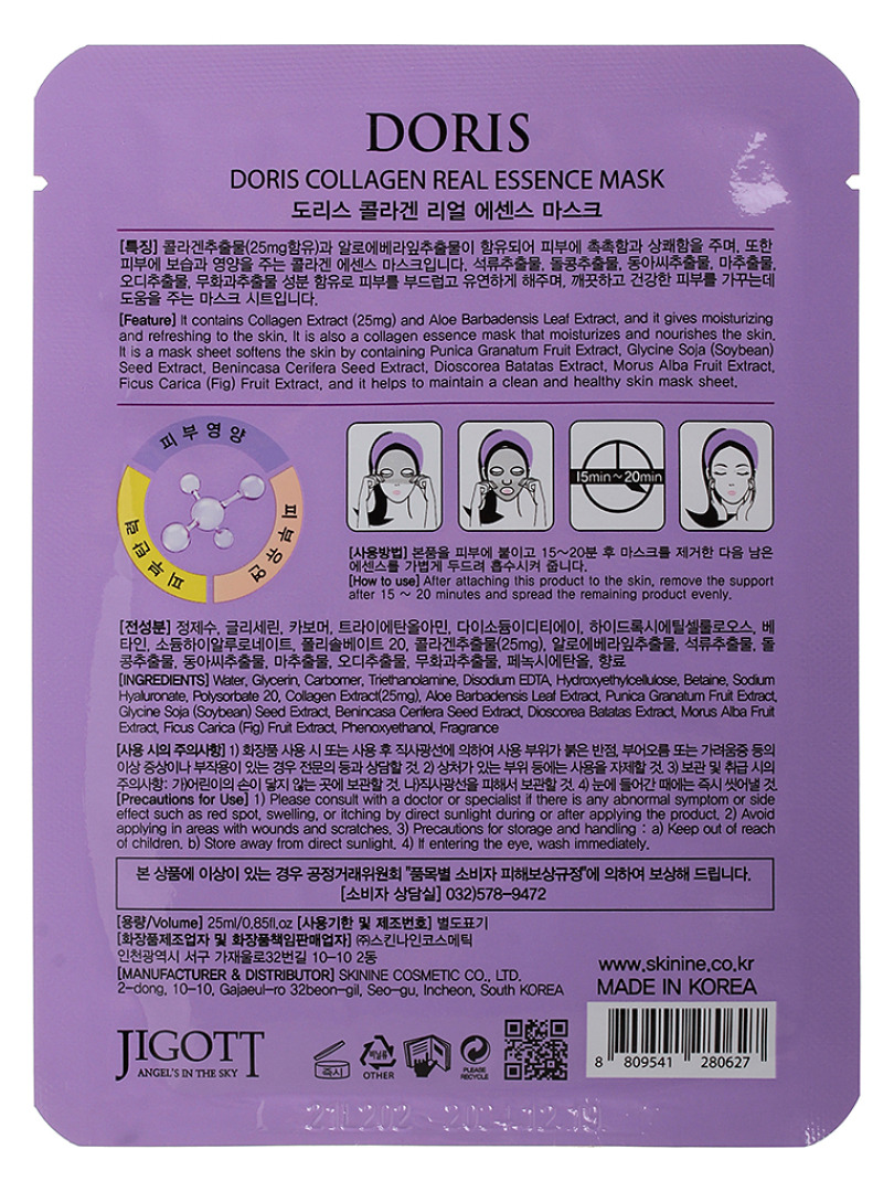 JGT Маска на тканевой основе DORIS COLLAGEN REAL ESSENCE MASK, 25ml