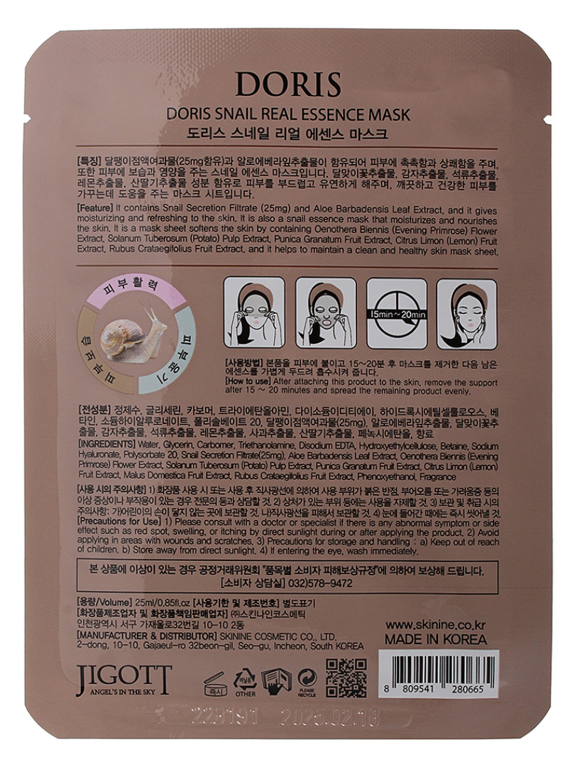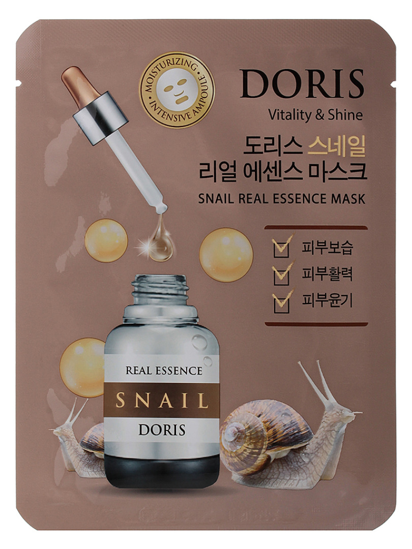 JGT Маска на тканевой основе DORIS SNAIL REAL ESSENCE MASK, 25ml