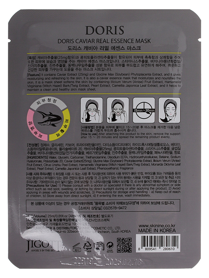 JGT Маска на тканевой основе DORIS CAVIAR REAL ESSENCE MASK, 25ml