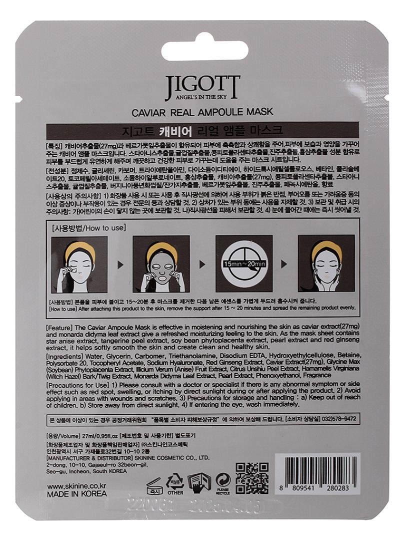 JGT Маска на тканевой основе JIGOTT CAVIAR REAL AMPOULE MASK