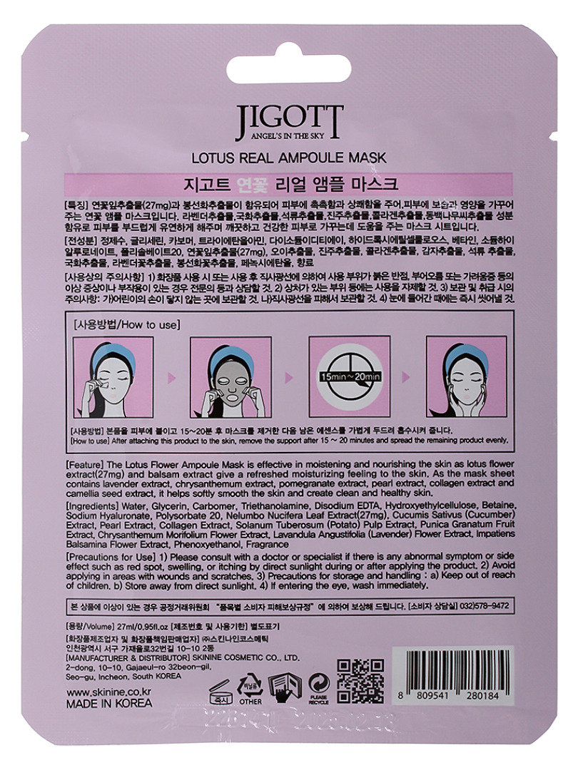 JGT Маска на тканевой основе JIGOTT LOTUS REAL AMPOULE MASK
