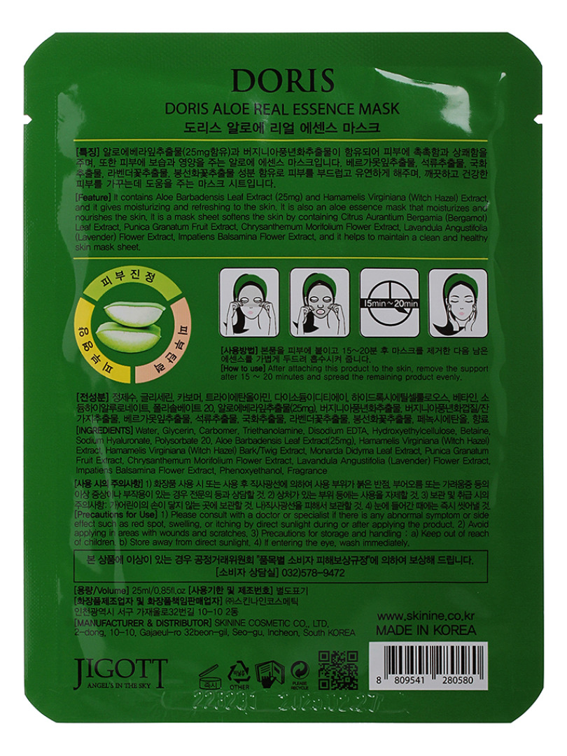 JGT Маска на тканевой основе DORIS ALOE REAL ESSENCE MASK, 25ml