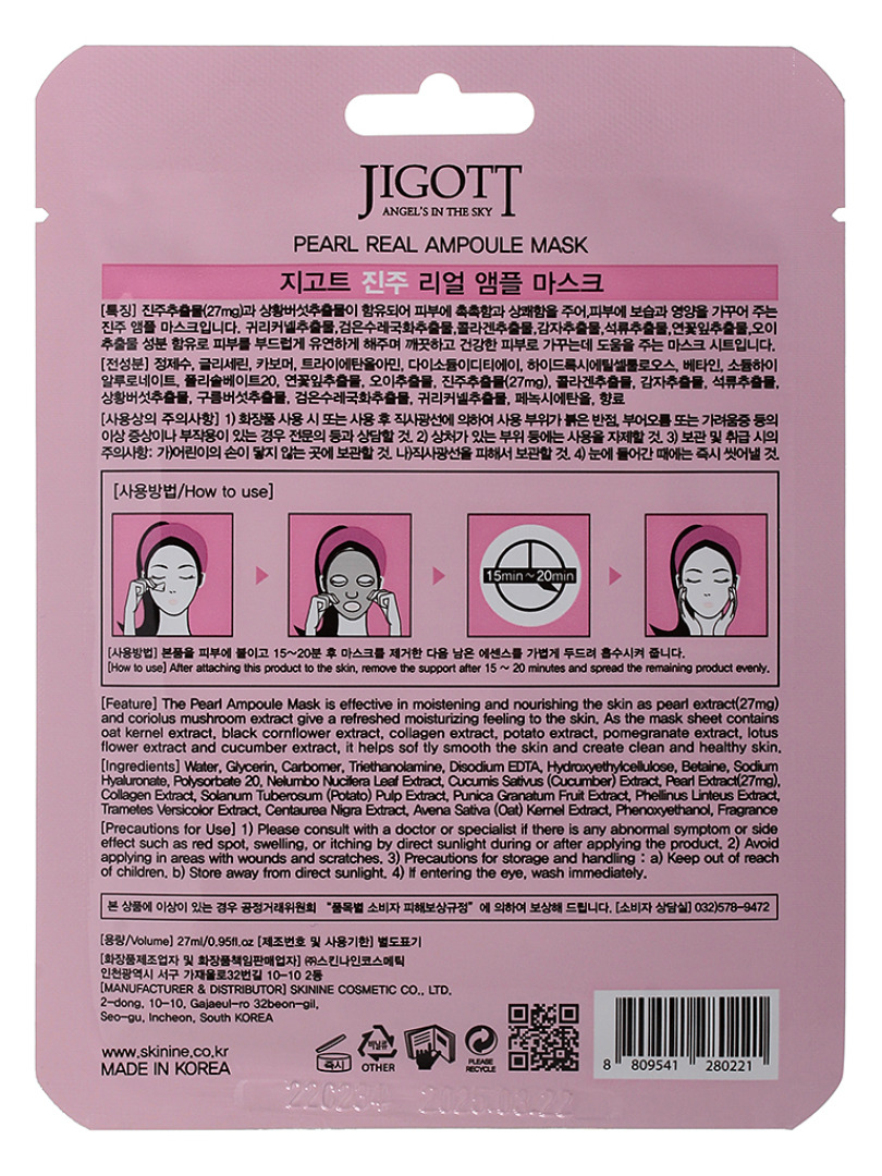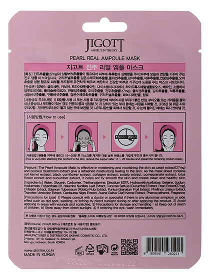 JGT Маска на тканевой основе JIGOTT PEARL REAL AMPOULE MASK