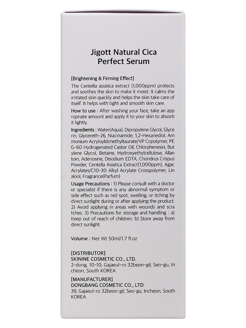 JGT Serum Сыворотка для лица с экстрактом центеллы азиатской Jigott Natural Cica Perfect Serum 50ml