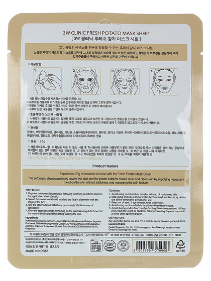 3W Маска тканевая с экстрактом картофеля FRESH POTATO MASK SHEET, 23ml