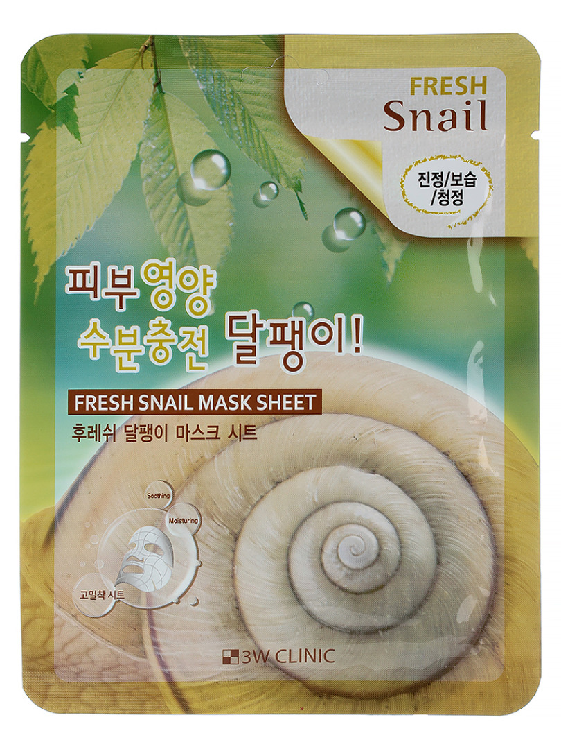 3W Маска тканевая с экстрактом муцина улитки FRESH SNAIL MUCUS MASK SHEET, 23ml