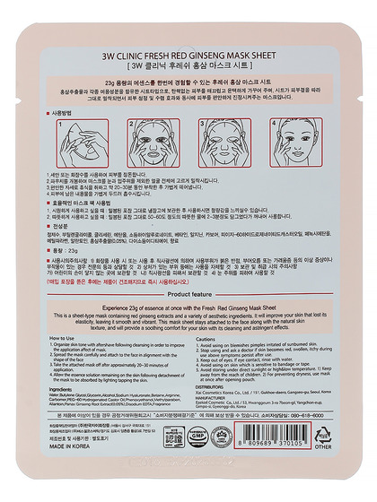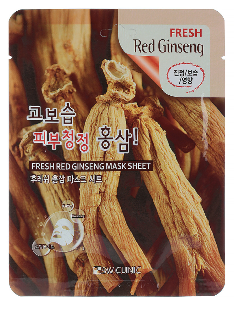 3W Маска тканевая с экстрактом красного женьшеня FRESH RED GINSENG MASK SHEET, 23ml