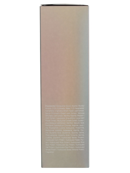 Dipropylene Glycol, Alcohol, Myristyl Alcohol, C13-15 Alkane, Water, 1,2-Hexanediol, Hamamelis Virginiana (Witch Hazel) Leaf Extract, Salvia Officinalis (Sage) Leaf Extract, Melissa Officinalis Leaf Extract, Mentha Piperita (Peppermint) Extract, Lavandula Angustifolia (Lavender) Flower Extract, Houttuynia Cordata Extract, Eucalyptus Globulus Leaf Extract, Menthol, Salicylic Acid, Panthenol, Cetrimonium Chloride, Arginine, Leucine, Tryptophan, Lysine, Isoleucine, Threonine, Methionine, Histidine, Asparagine, Alanine, Proline, Glutamic Acid, Glutamine, Glycine, Valine, Phenylalanine, Aspartic Acid, Tyrosine, Serine, Cystine, Glycerin, Hydrolyzed Barley Protein, Hydrolyzed Corn Protein, Hydrolyzed Potato Protein, Hydrolyzed Rice Protein, Hydrolyzed Rice Bran Protein, Hydrolyzed Soy Protein, Hydrolyzed Oat Protein, Hydrolyzed Pea Protein, Hydrolyzed Wheat Protein, Hydrolyzed Sweet Almond Protein, Fragrance