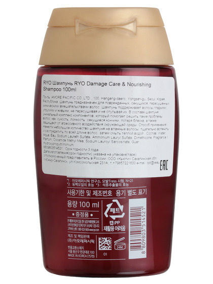 Изготовитель: AMORE PACIFIC CO.,LTD., 100, Hangang-daero, Yongsan-gu, Seoul, Корея, Республика. Шампунь предназначен для поврежденных, секущихся, пересушенных химическими вмешательствами волос. Шампунь поддерживает волосы гладкими, упругими и живыми, не пересушивая и не спутывая их. В составе шампуня уникальный комплекс компонентов, который помогает решить такие проблемы волос, как: сухость, ломкость, секущиеся кончики, потеря блеска, а также защищают от агрессивного воздействия окружающей среды. Способ применения: Нанести небольшое количество шампуня на влажные волосы, тщательно вспенить и распределить по всей длине волос, затем смыть тёплой водой.