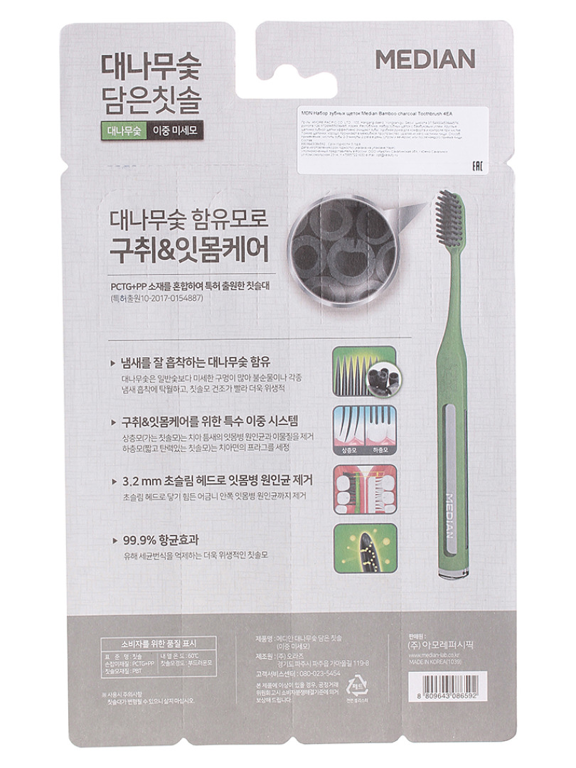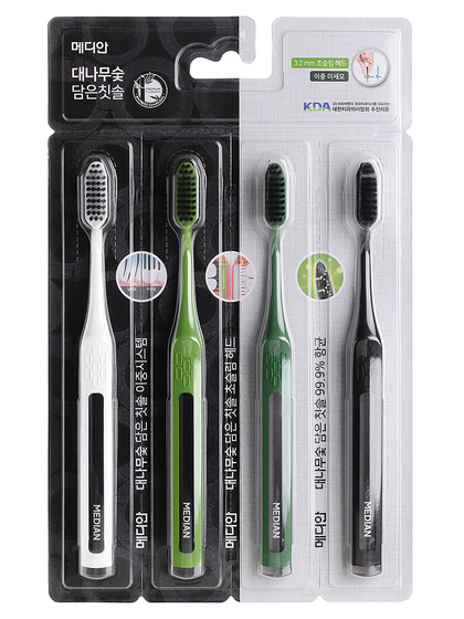MDN Зубная щетка Median Bamboo Charcoal Toothbrush набор 4шт