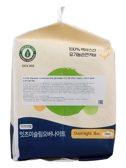 It's Me organic cotton Прокладки женские гигиенические с крылышками ночные, 5 капель It's Me Slim organic cotton pads overnight 8p