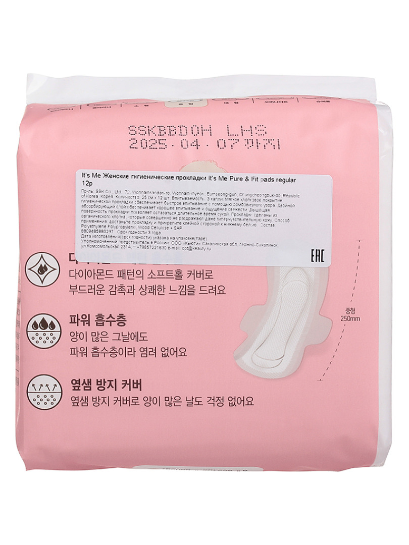 Изготовитель: SSK Co., Ltd., 72, Wonnamsandan-ro, Wonnam-myeon, Eumseong-gun, Chungcheongbuk-do, Republic of Korea, Корея. Количество: 25 см х 12 шт. Впитываемость: 3 капли. Мягкое хлопковое покрытие гигиенической прокладки обеспечивает быстрое впитывание с помощью ромбовидного узора. Двойной абсорбирующий слой обеспечивает хорошее впитывание и ощущение свежести. Дышащая поверхность прокладки позволяет оставаться длительное время сухой. Прокладки сделаны из натурального хлопка, которые совершенно не раздражают даже гиперчувствительную кожу. Способ применения: достаньте прокладку и прикрепите клейкой стороной к нижнему белью.