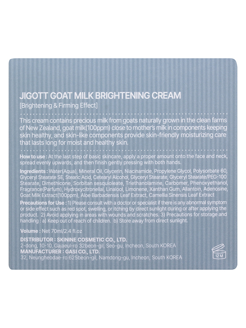 JGT CREAM Крем для лица с козьим молоком JIGOTT GOAT MILK BRIGHTENING CREAM, 70ml