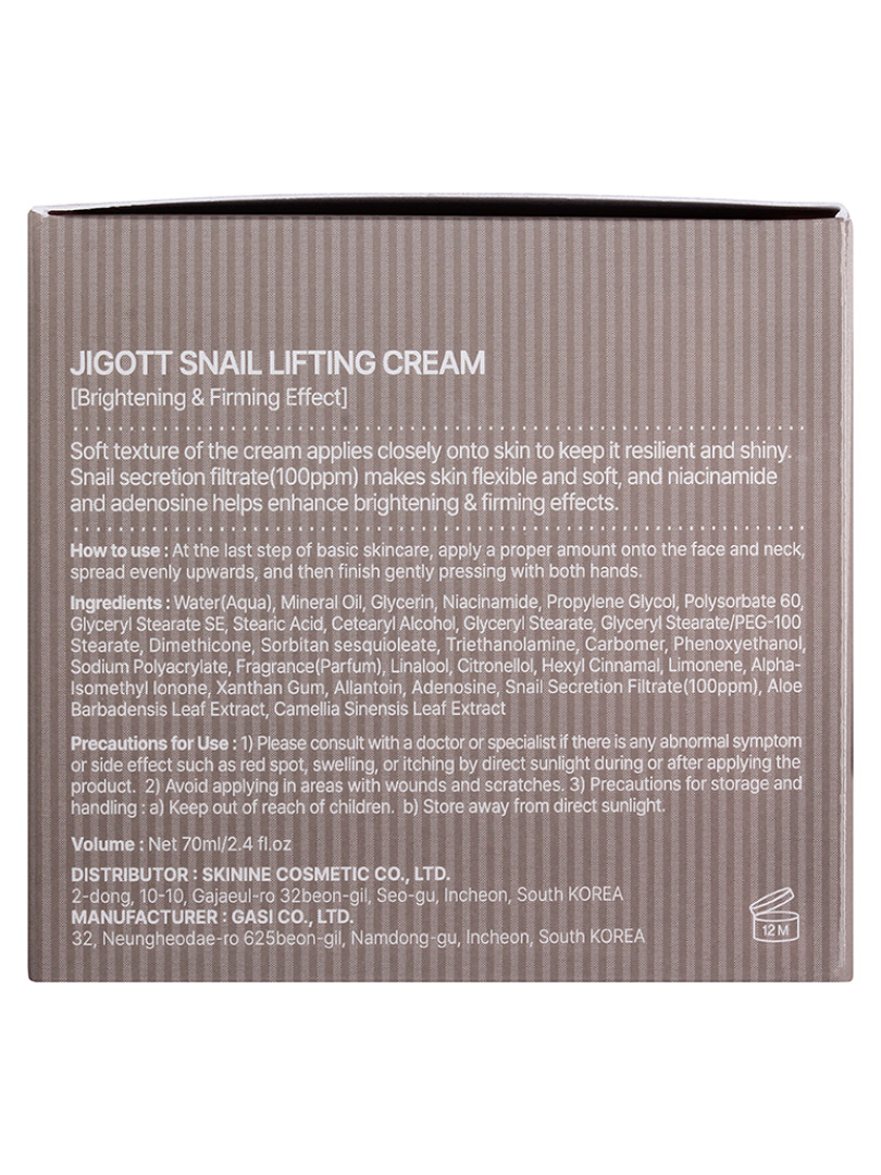JGT CREAM Крем-лифтинг для лица с муцином улитки JIGOTT SNAIL LIFTING CREAM, 70ml