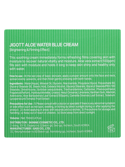 JGT CREAM Крем для лица с алоэ JIGOTT ALOE WATER BLUE CREAM, 70 ml