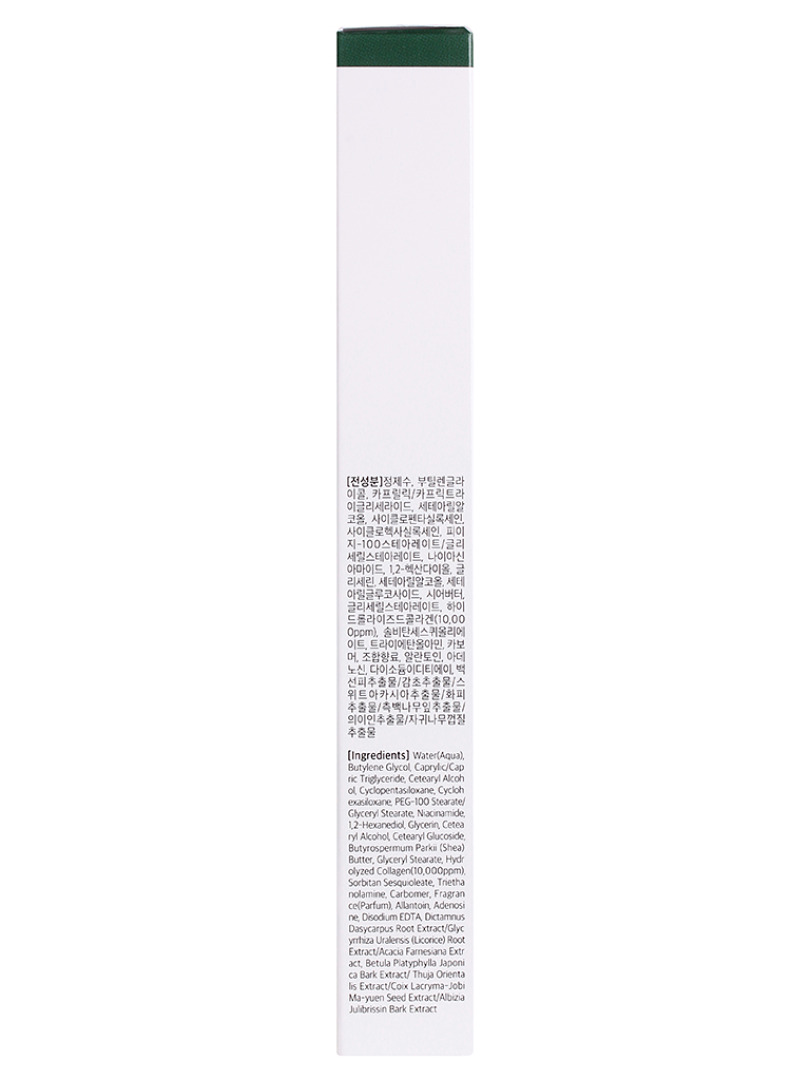 Water, Butylene Glycol, Caprylic/Capric Triglyceride, Cetearyl Alcohol, Cyclopentasiloxane, Cyclohexasiloxane, PEG-100 Stearate, Glyceryl Stearate, Niacinamide, 1,2-Hexanediol, Glycerin, Cetearyl Alcohol/Cetearyl Glucoside, Butyrospermum Parkii (Shea) Butter, Glyceryl Stearate, Hydrolyzed Collagen, Sorbitan Sesquioleate, Triethanolamine, Carbomer, Fragrance, Allantoin, Adenosine, Disodium EDTA, Dictamnus Dasycarpus Root Extract, Glycyrrhiza Uralensis (Licorice) Root Extract, Acacia Farnesiana Extract, Betula Platyphylla Japonica Bark Extract, Thuja Orientalis Extract, Coix Lacryma-Jobi Ma-yuen Seed Extract, Albizia Julibrissin Bark Extract