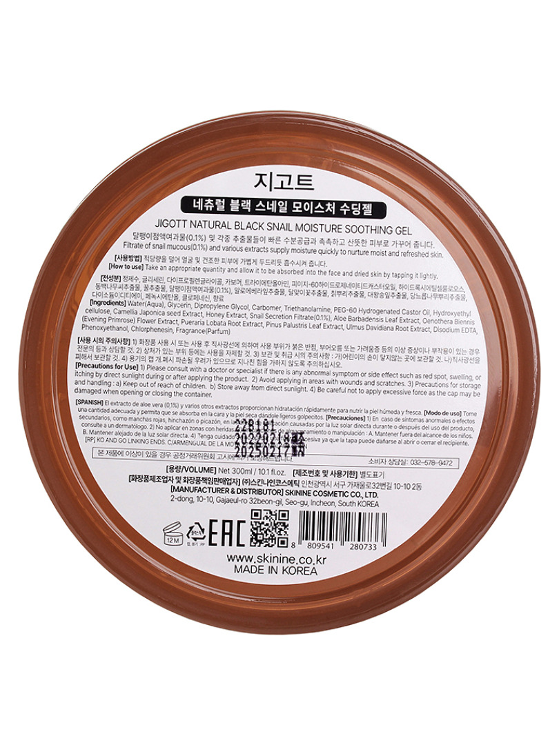 JGT GEL Гель для тела увлажняющий с муцином черной улитки JIGOTT NATURAL BLACK SNAIL MOISTURE SOOTHING GEL, 300ml