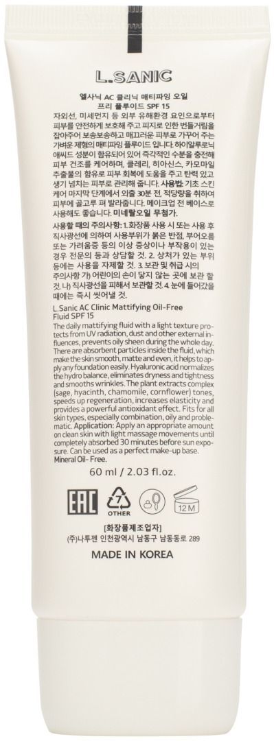LSN AC Флюид дневной суперлёгкий матирующий AC Clinic Mattifying Oil-Free Fluid SPF 15, 60ml