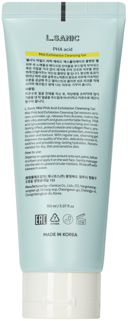LSN Exfoliation Гель для умывания с PHA-кислотами Mild PHA Acid Exfoliation Cleansing Gel, 150ml